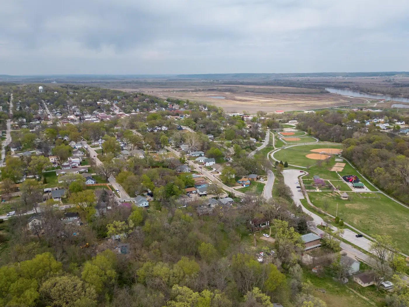 Aerial View of Plattsmouth with Rhylander Park and the Missouri River