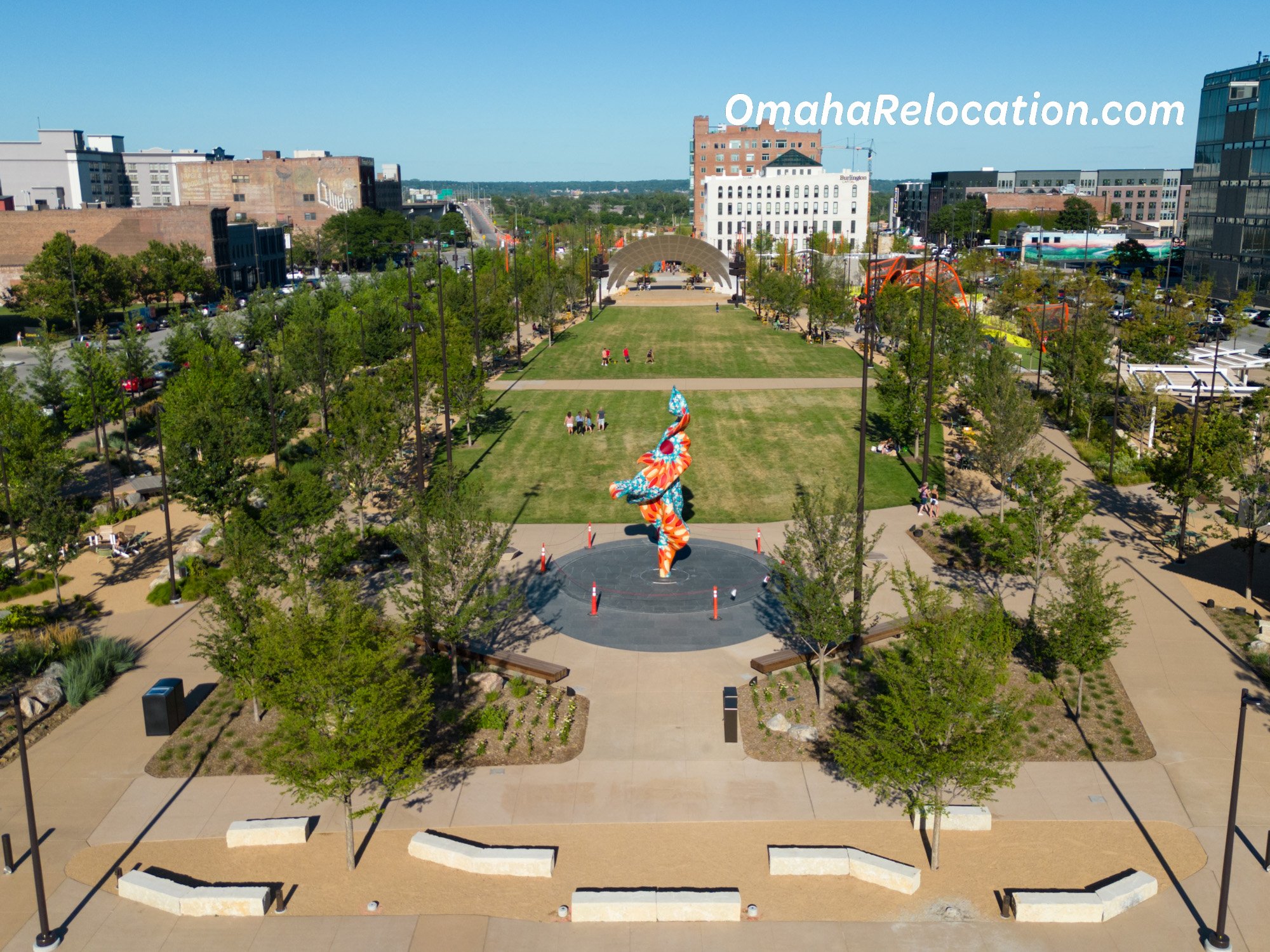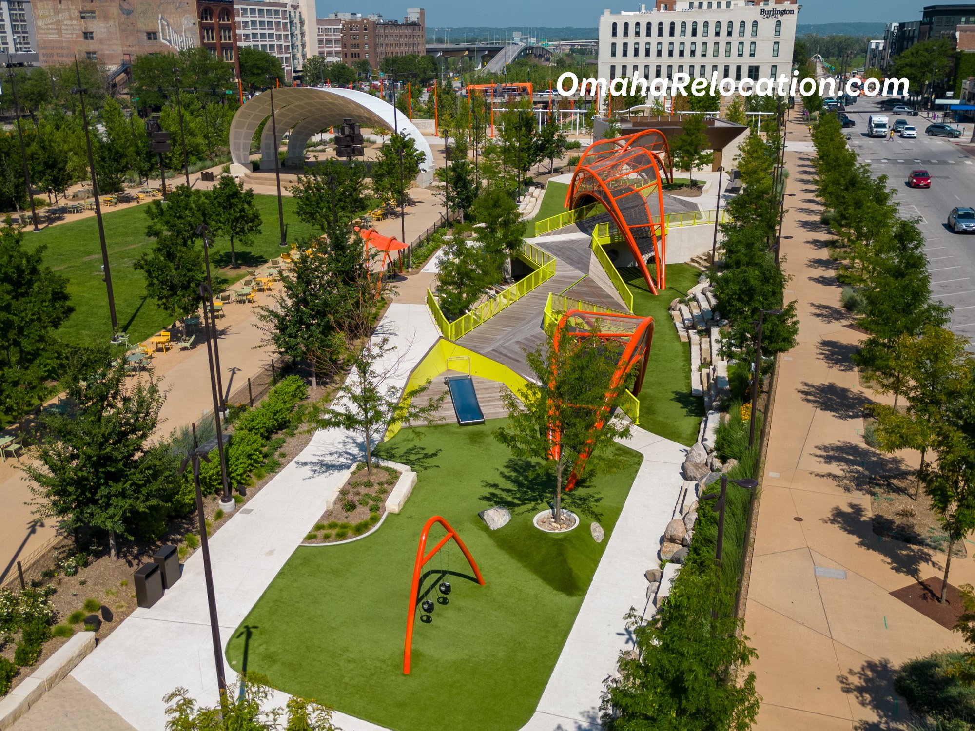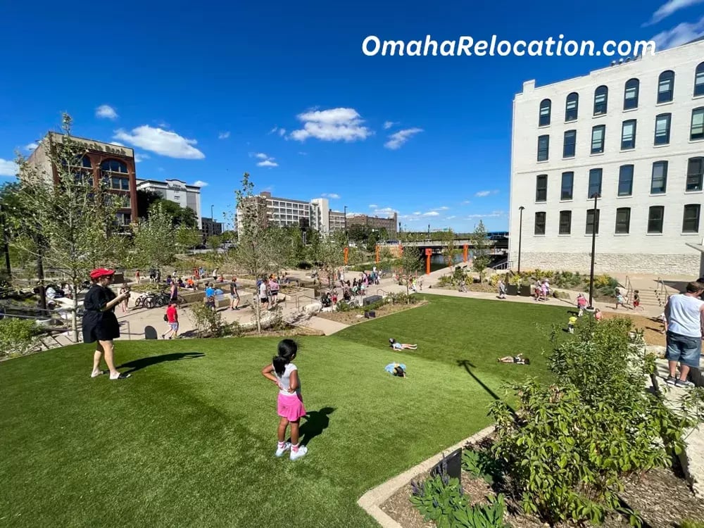 The park is located in an ideal part of downtown Omaha, less than a mile west of the Missouri River, and surrounded by the tallest buildings in Omaha.